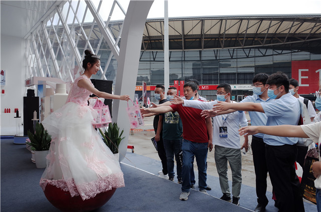 展会期间特邀模特现场互动,引人驻足,滑稽的不倒翁与粉色礼服的结合,特有的愉氛围将品牌的优雅灵动展现得淋漓尽致,不仅加深了新客户对品牌形象的认识与了解,同时也为合作奠定基础,现场络绎不绝,市场的复苏,也为参展商带来了信心!